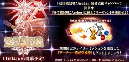 いよいよ冠位戴冠戦アーチャーが本日開幕。乗り越える冠位英霊への期待…果たしてグランドアーチャーはどんな弓を披露してくれるのか!