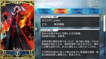 セイバー近藤勇の性能詳細が判明!新選組特性付与スキル&全体Arts宝具を搭載、最終再臨ビジュアルも公開