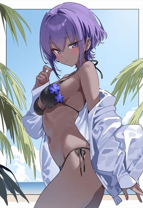 水着の静謐ちゃんイラスト!! 黒ビキニの静謐ちゃん最高です!