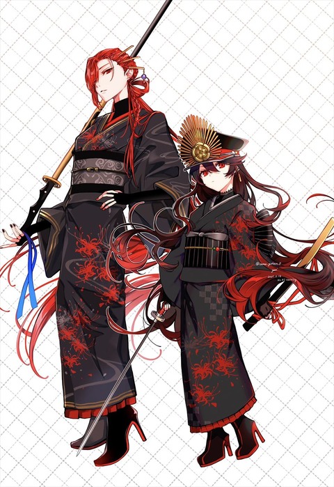 黒い着物のノッブ&魔王ノッブ!! お揃い着物、いいですね!!