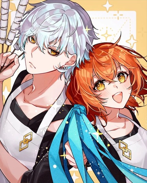 ゼムルプス棒を持ったカドック&ぐだ子!! お掃除モードの二人いいですね!!