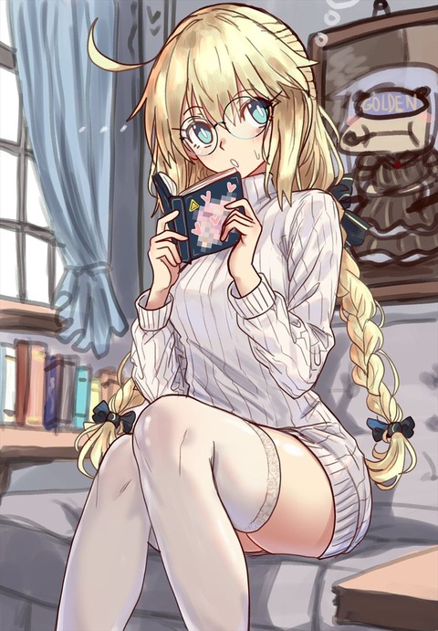 部屋着姿のトネリコ&キャストリアイラスト!! セーター&ニーソいいですね!!