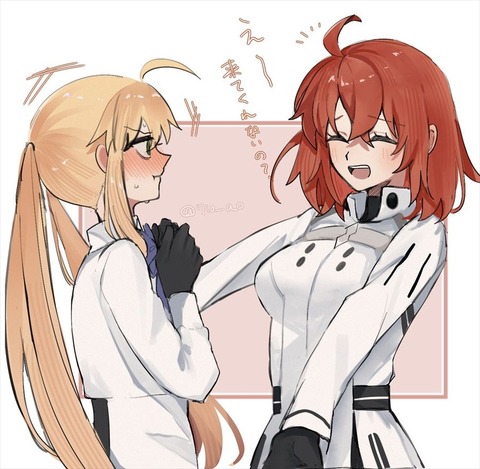 おみぃさん&ぐだ子イラスト!! お揃い服良いですね!!
