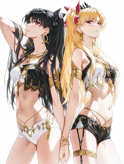 スタイリッシュな衣装のイシュタル&エレちゃん!! W女神のお腹最高です!!