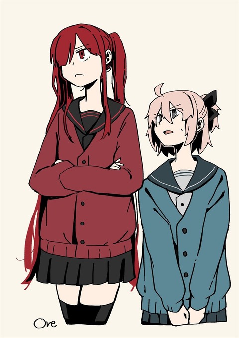 制服の魔王ノッブ&沖田さん!! 身長高い女子いいです!!