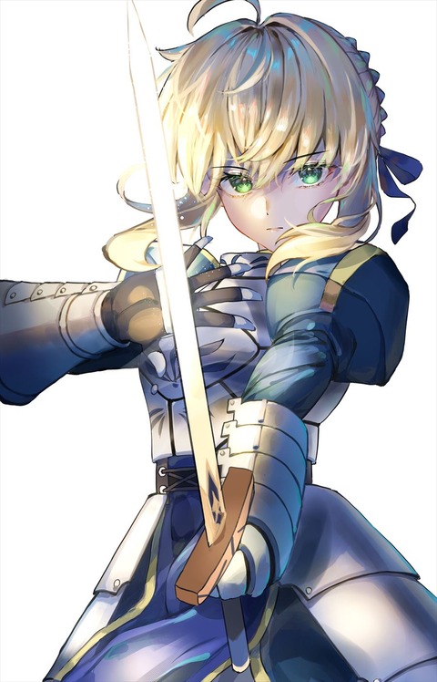 アルトリアイラスト!! 光るエクスカリバーが神々しいです!!