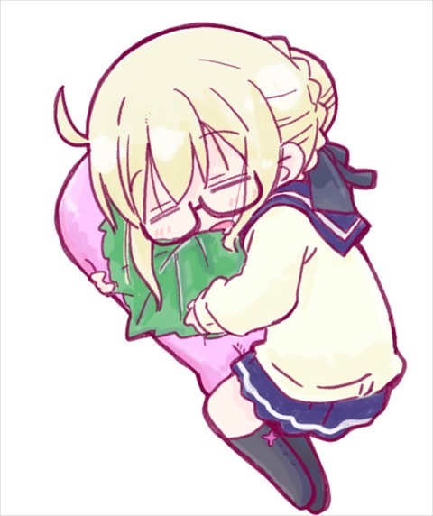 桜餅クッションを抱きしめて寝てるえっちゃん!! 制服えっちゃん可愛いです!!