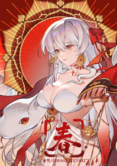 チャイナドレスの虞美人パイセンイラスト!! 赤チャイナが似合いますね!!