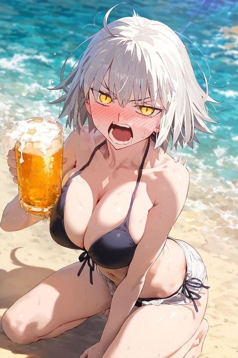 水着姿の邪ンヌイラスト!! 黒ビキニ&ビールの組み合わせいいですね!!
