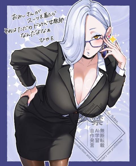 スーツ姿のおみぃさんイラスト!! 眼鏡いいですね!!