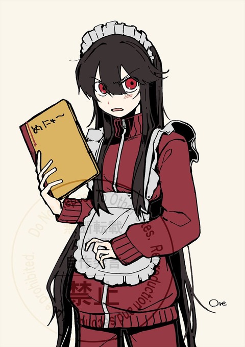 ジャージメイドなノッブイラスト!! めにゅ~持ってるの可愛いなw