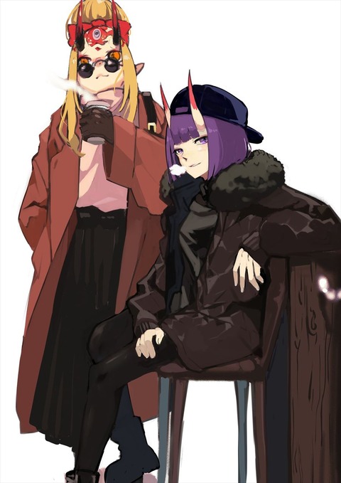 冬コーデの鬼コンビイラスト!! 酒呑ちゃんと茨木ちゃんどっちもいいですね!!