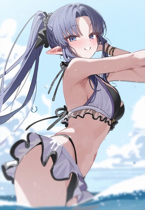 水着のメディアリリィイラスト!! エルフ耳が可愛いですね!!