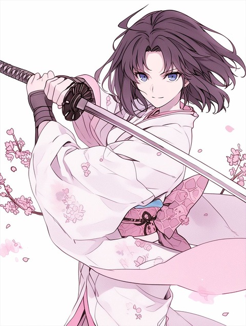 着物姿の式イラスト!! 着物と刀の組み合わせいいですね!!