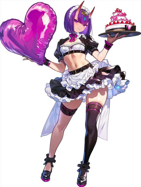 メイド衣装の酒呑ちゃんイラスト!! 腹筋が素晴らしいですね!!