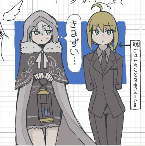 スーツセイバー&グレイたんイラスト!! グレイたんだけ気まずく思ってるの可愛いなw