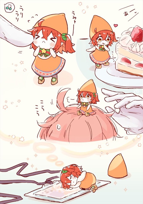 ミニぐだ子イラスト!! ケーキ食べてるの可愛いです!!