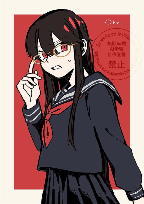 セーラー服姿のノッブイラスト!! 眼鏡&セーラー服いいですね!!