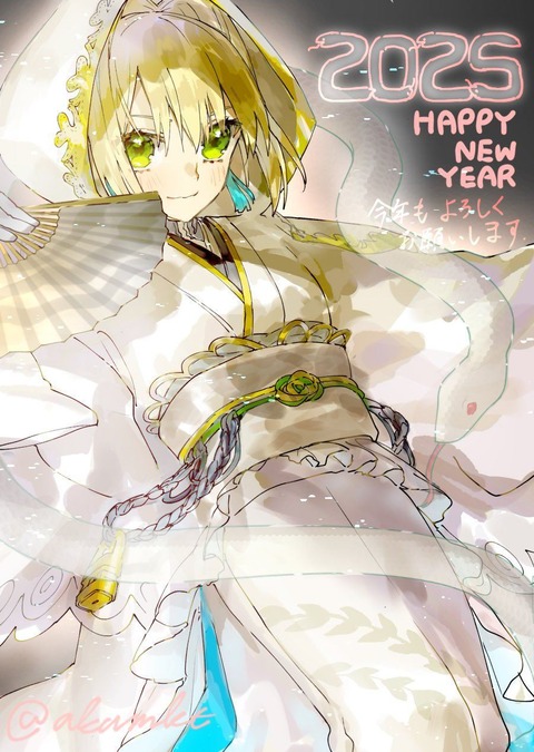 着物姿の嫁ネロちゃまイラスト!! 白い着物がいいですね!!