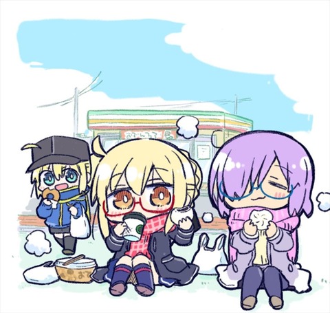ミニなえっちゃん&マシュ!! コンビニで買い食いしてる二人可愛いですね!!