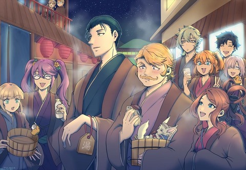 カルデア社員旅行イラスト!! 温泉旅行いいですね!!