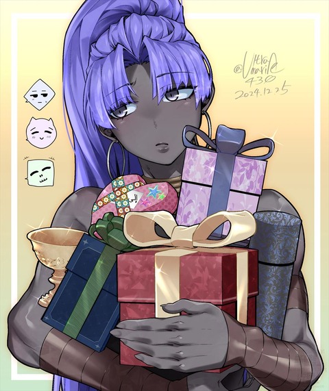 プレゼントを沢山持ったハサンさんイラスト!! 百貌さんよかったね!!