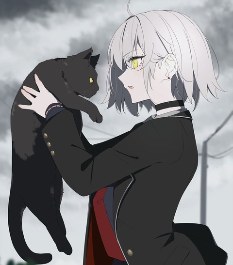黒猫と制服邪ンヌイラスト!! 似た者同士ですね!!