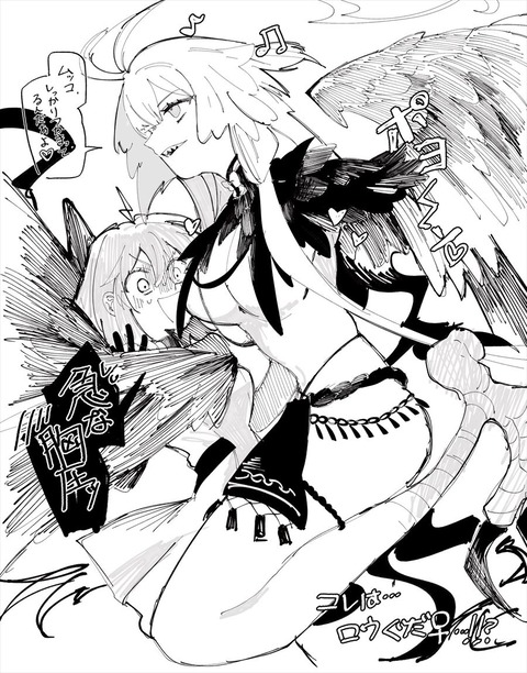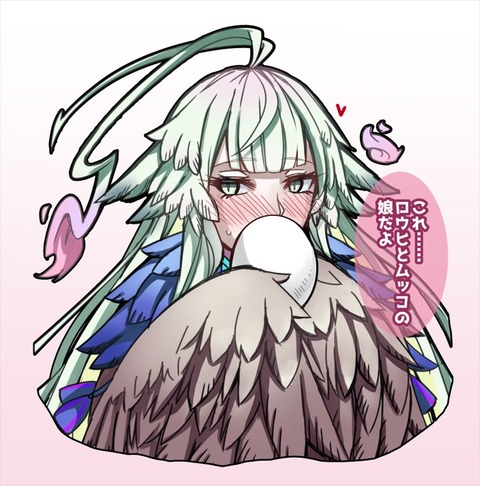 ロウヒちゃんの腕(翼)で抱き寄せられるぐだ子!! 胸が当たってますよ!!