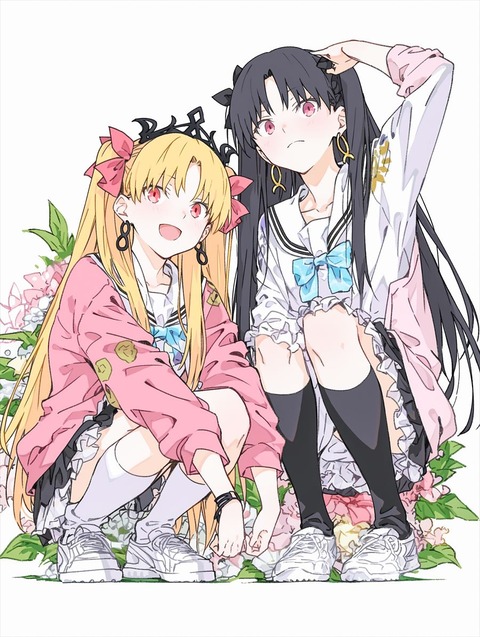制服姿のエレちゃん&イシュタルイラスト!! セーラー服の二人可愛いです!!
