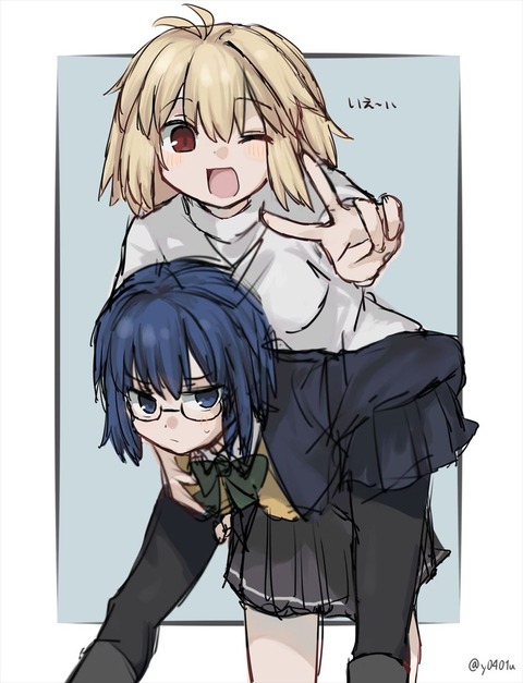 アルク&シエル先輩イラスト!! アルクをおんぶするシエル先輩いいですね!!
