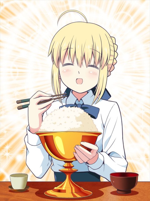 聖杯でご飯を食べるアルトリア!! いい笑顔だ!!