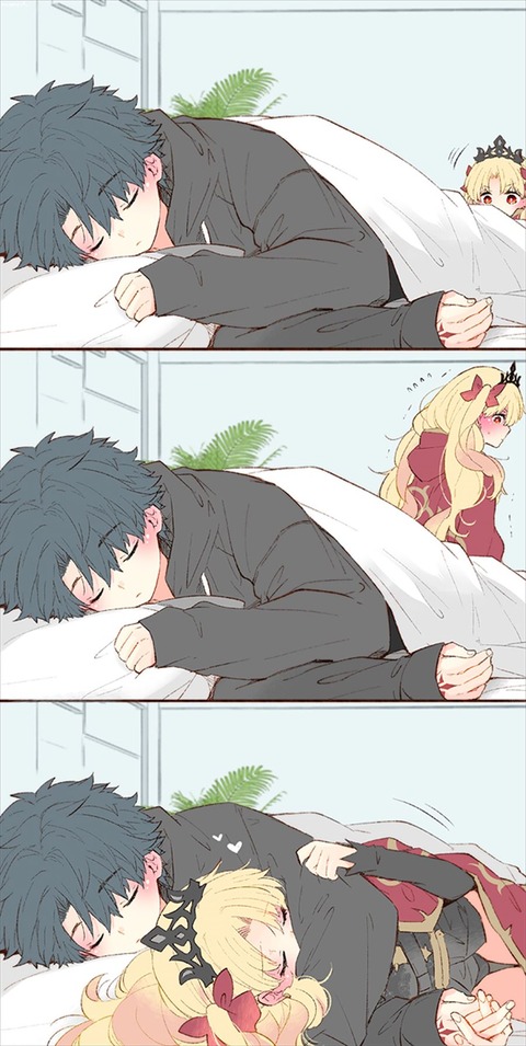 寝ているぐだ男に寄り添うエレちゃん!! セルフ腕枕、すこw