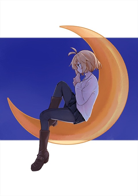 月に座るアルクイラスト!! 三日月とアルクもいいですね!!