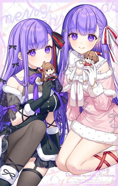 BBちゃんと桜イラスト!! クリスマス衣装の二人いいですね!!