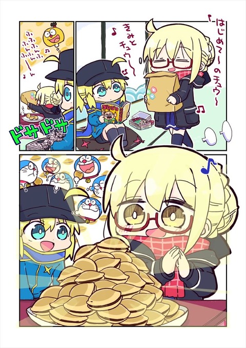 えっちゃん&ヒロインXイラスト!! どら焼き美味しそうです!!