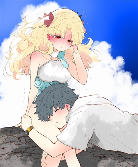水着エレちゃん&ぐだ男イラスト!! 膝枕してもらってるのうらやましいです!!