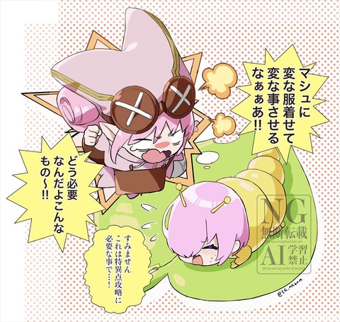 マシュに変な服を着せられて怒ってるハベにゃん!! 芋虫マシュもすこw