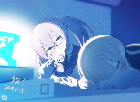 11月23日(いい兄さんの日)に霧月先生が宮本伊織と小笠原カヤのイラストを公開