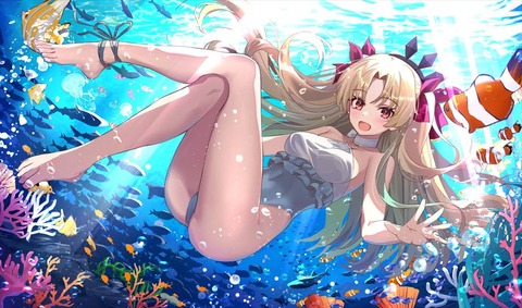 水着のエレちゃんイラスト!! 透き通った海がいいですね!!
