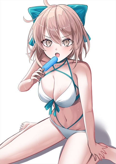 水着沖田さんイラスト!! 棒アイス食べてるの可愛いです!!