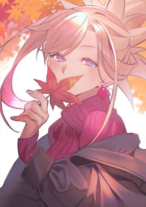 秋の武蔵ちゃんイラスト!! 紅葉の葉と武蔵ちゃんいいですね!!