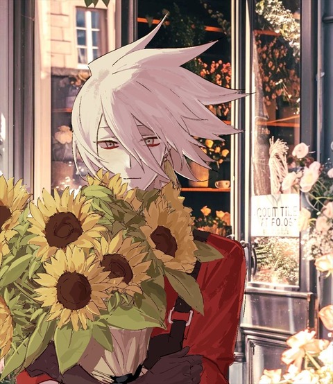 カルナさんイラスト!! ひまわりの花束持ってるカルナさん良いですね!!