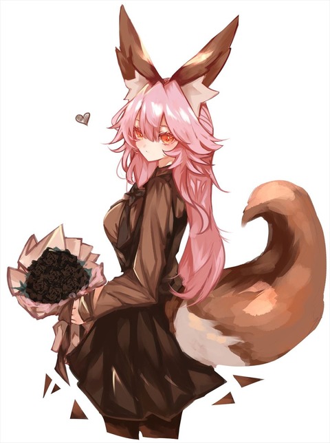 シックな衣装の玉藻ちゃんイラスト!! 黒いバラの花束良いですね!!