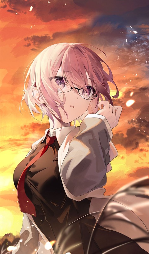 夕焼けマシュイラスト!! 眼鏡のマシュいいですね!!