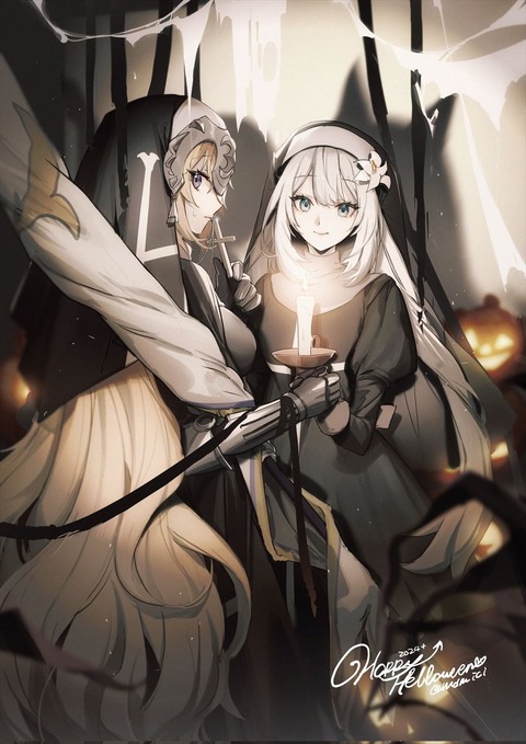 ハロウィン衣装のシスター邪ンヌ&マリーイラスト!! シスター衣装の二人可愛すぎる////////