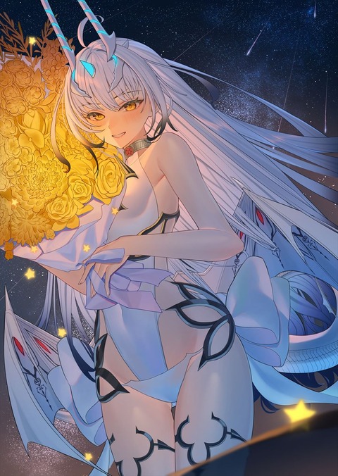 花束を持った水着メリュジーヌイラスト!! 黄金の花束いいですね!!