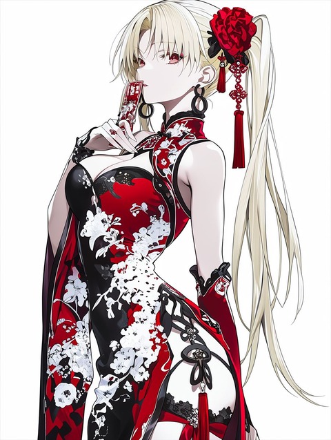 チャイナドレスのエレちゃんイラスト!! 赤チャイナドレスいいですね!!