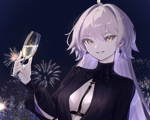 黒ドレス姿の邪ンヌイラスト!! シャンパン片手に持ってるのいいですね!!