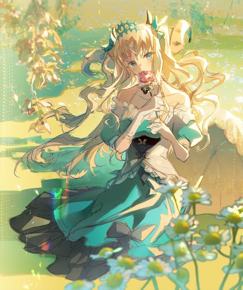 水着エレちゃんイラスト!! 花に口づけするスペースエレちゃんいいですね!!
